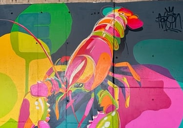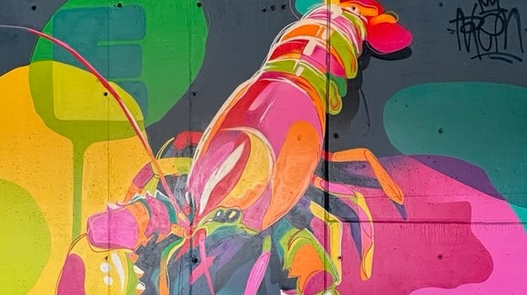 Lors du festival d'art urbain de Bourgoin-Jallieu, les artistes devaient créer une plante ou un animal associé à l'une des lettres de l'expression « Nature en ville ». J'ai créé une écrevisse et des nénuphars. En France, l'écrevisse blanche européenne, un crustacé endémique, est menacée d'extinction par l'écrevisse américaine, introduite en Europe à des fins commerciales.