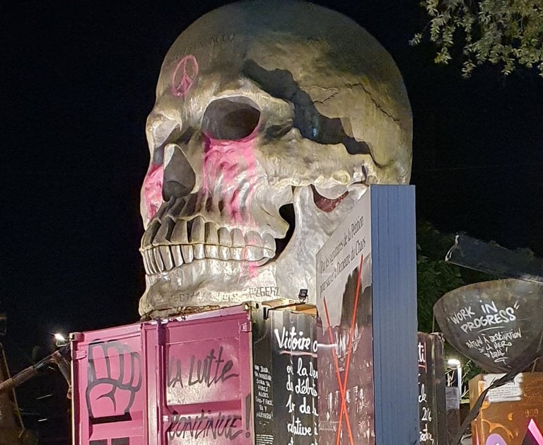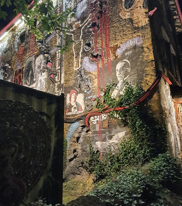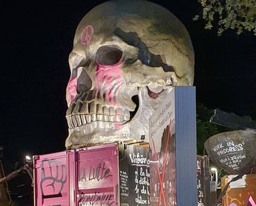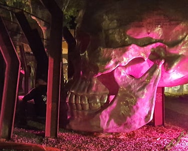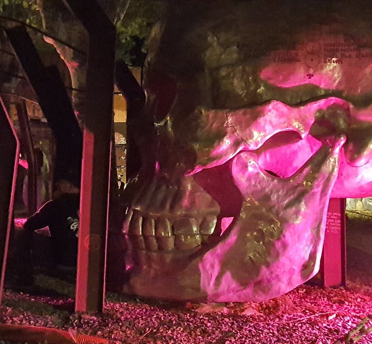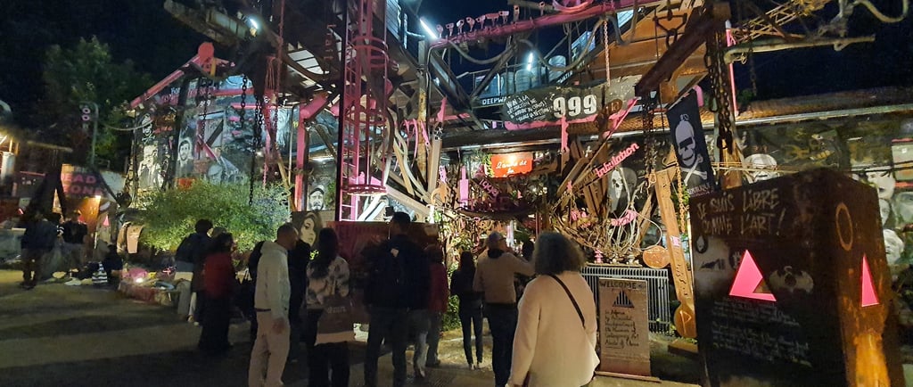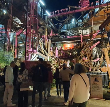 Dès mon arrivée, j’ai été happée par l’atmosphère unique du site. Sous la lumière trouble des projecteurs, les sculptures métalliques, les portraits monumentaux, les carcasses de véhicules et les messages peints sur les murs prenaient une dimension presque mystique. Chaque recoin semblait raconter une histoire — ou un avertissement.